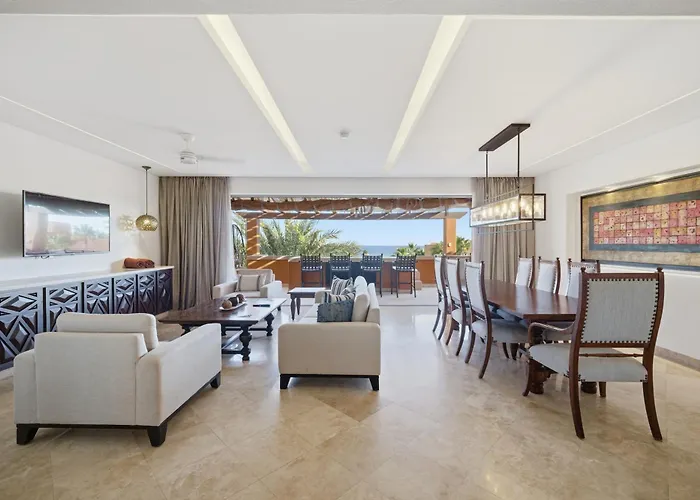 El Presidential Two Bedroom Suite Ocean View - Casa del Mar Cabo San Lucas está situado a poco más de 20 minutos a pie de la playa de Tequila Cove y ofrece una piscina. El apartamento, que cuenta con una bañera de hidromasaje, está cerca de la Reserva Natural Desert Park.